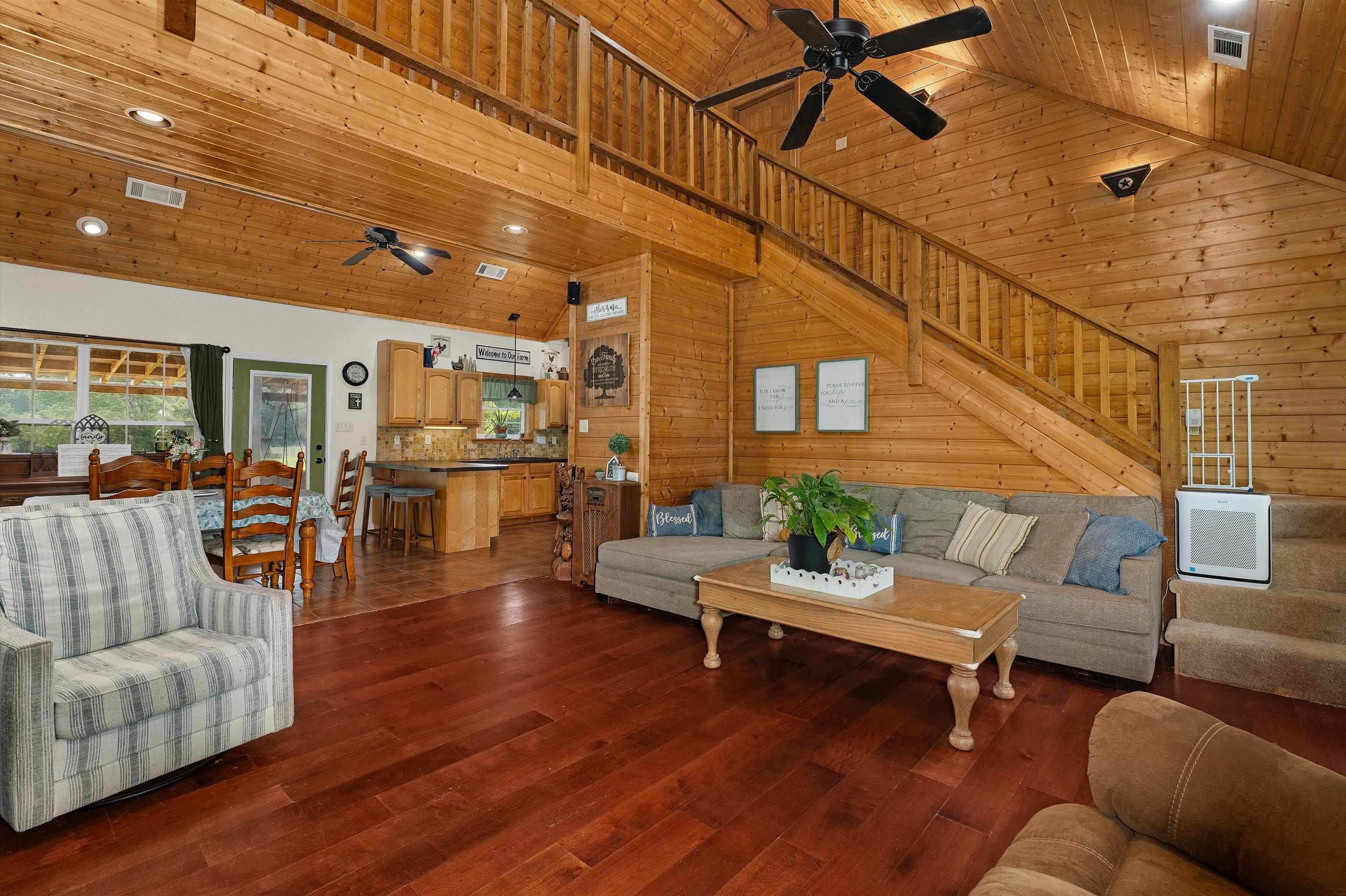 | Welcome to Country living 4-bedroom, 2-bath home offers the perfect blend of rustic charm and modern comfort. Featuring stunning spruce wood walls and a floor-to-ceiling stone, wood-burning fireplace, the open-concept living area creates a warm and inviting atmosphere ideal for both relaxing and entertaining. The thoughtfully designed layout includes two bedrooms upstairs, providing privacy and flexibility for family or guests. Step outside to enjoy all the amenities this fully equipped property has to offer: • Pipe fencing with electronic gate opener for added security and convenience • 30x30 workshop—perfect for projects, storage, or hobbies • Barn with stalls ready for livestock • Chicken coop for farm-fresh eggs • Established fruit trees adding beauty and seasonal harvest • Water well dedicated to irrigation • Under-sink water purification system With plenty of space for animals, gardening, or simply enjoying the peaceful surroundings, this property is ideal for those seeking a country lifestyle with functional upgrades already in place. | |