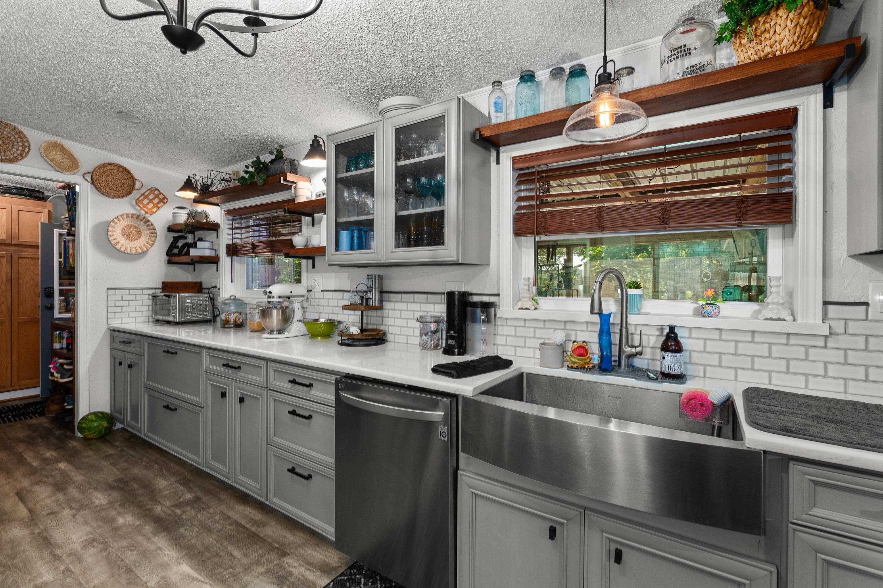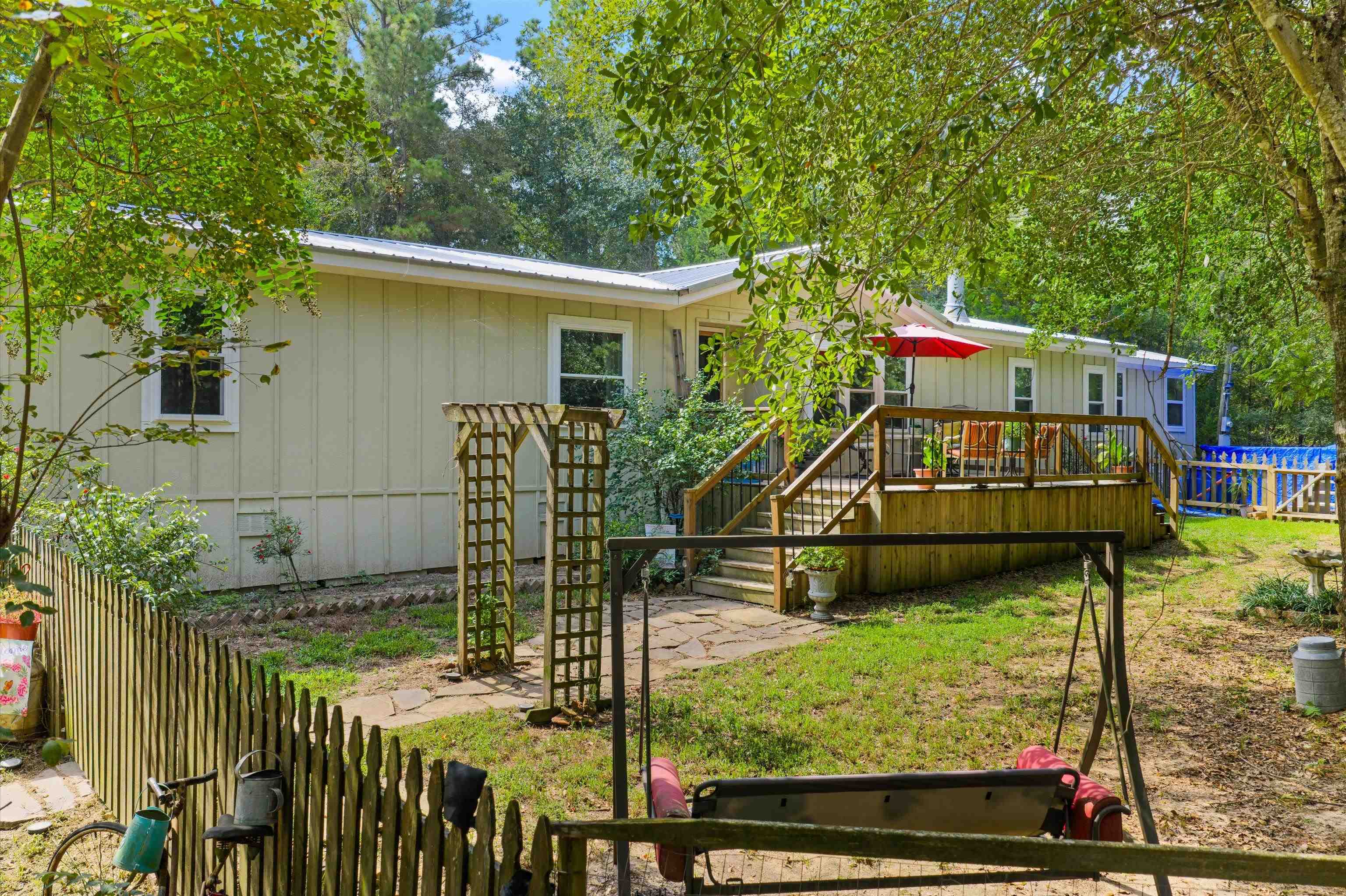 | This 3,288 sq. ft. home in the Arp ISD offers space, privacy, and endless possibilities. Originally a 1,850 sq. ft. manufactured home, it has been carefully expanded with a 24x36 den, laundry room, office, and a private master suite addition. The kitchen was fully remodeled in 2023 with brand-new custom cabinets and updated finishes, and hardy board siding was installed on entire home when additions were made for lasting durability. Inside, you’ll find 4 bedrooms, 2.5 baths, two propane fireplaces, and a screened-in back porch perfect for relaxing. Included is a finished flex room ideal for an office or business, a 1,080 sq. ft. shop, multiple storage buildings, and 3 buried cargo containers that can serve as additional storage or storm shelter (needs completion). With +/- 18 acres, a private pond, and a solar-powered gated entrance, this property is truly secluded and ready for a large family, family retreats. | |