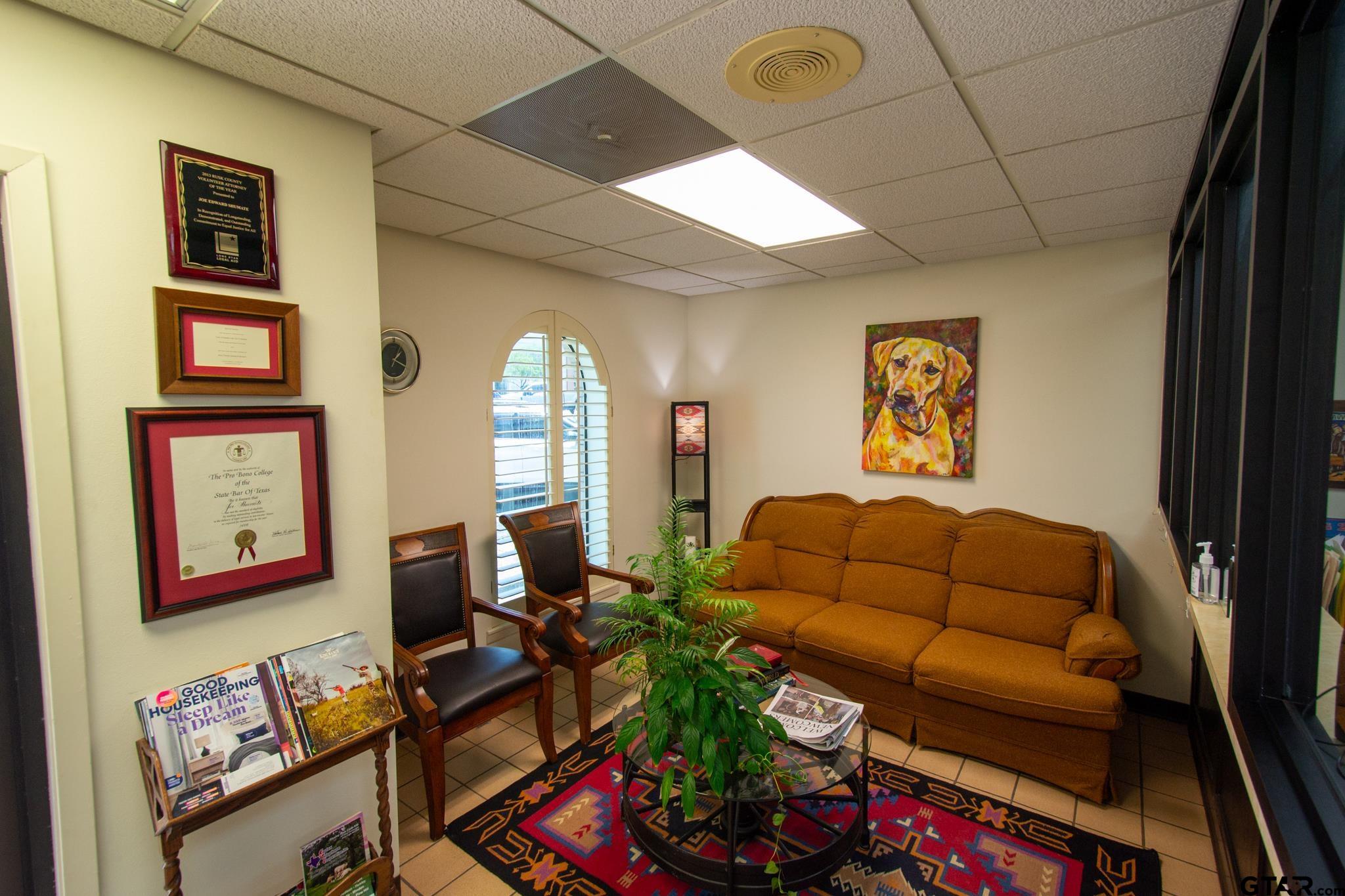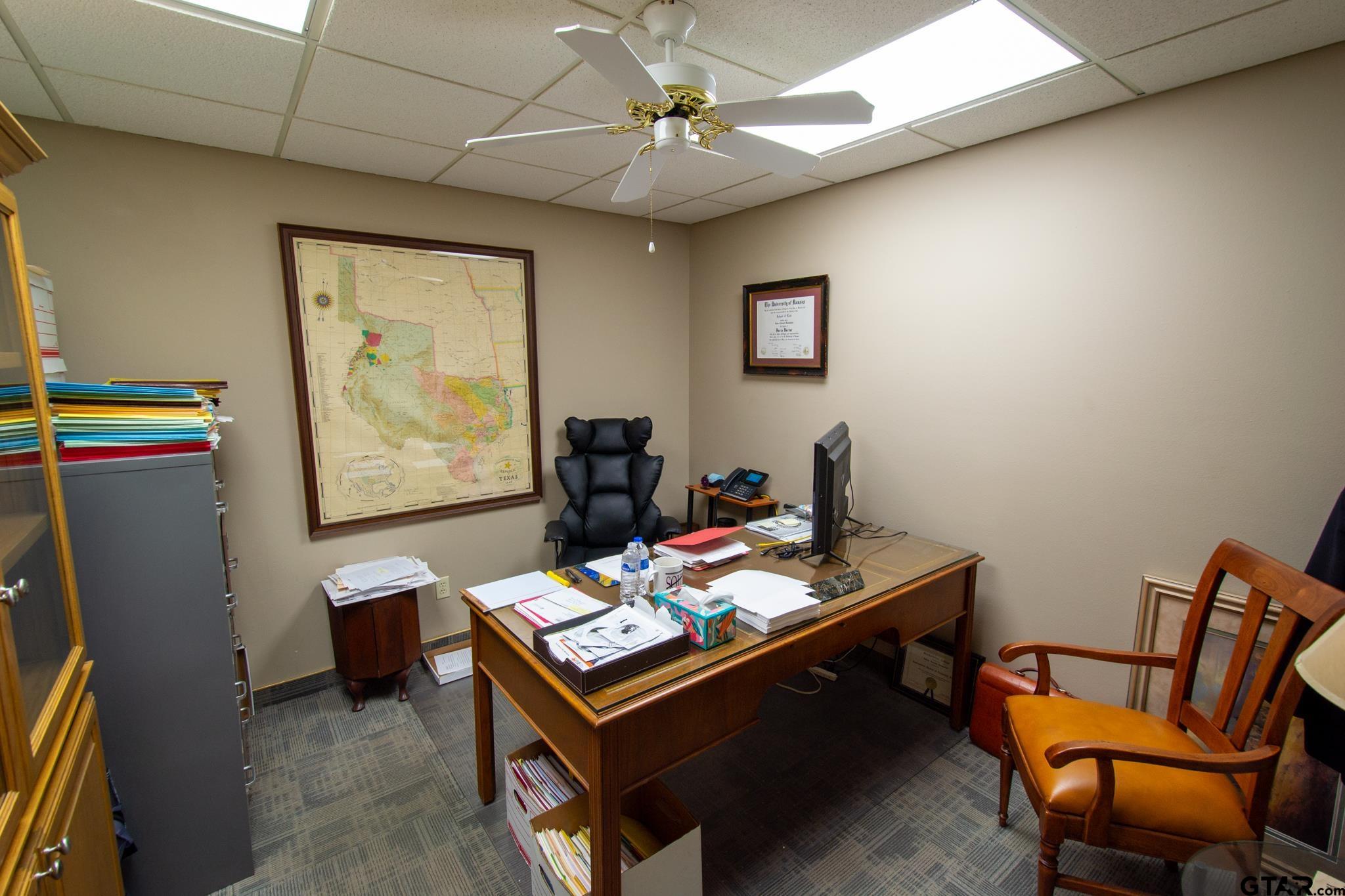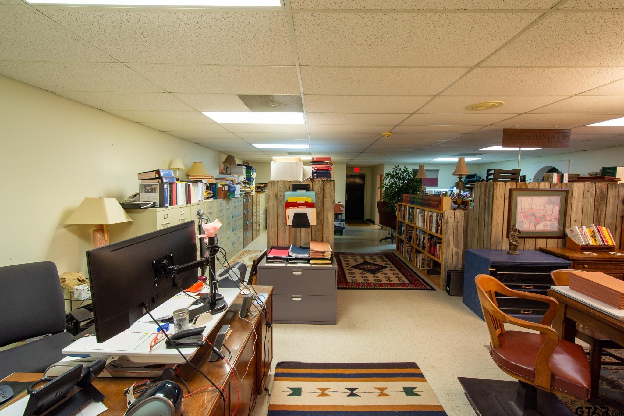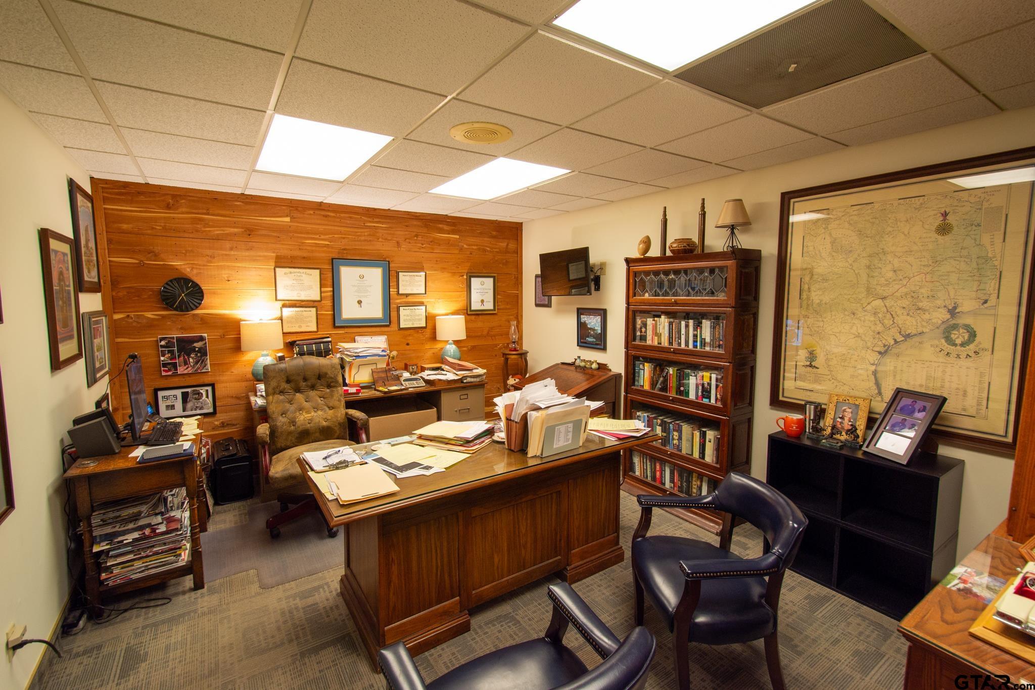 | Here’s your chance to secure your professional office just steps from the Rusk County courthouse. At just over 3000 square feet, the building consists of a lobby, reception area, multiple office/conference room configurations, two restrooms, a kitchen, storage, and a large open area currently being used as a law library. Call for a tour and come take a look at your new office in downtown Henderson, TX today! | |