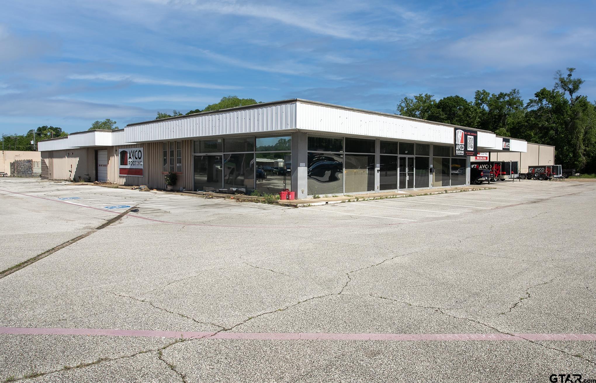 | Positioned on a large corner site at SH 31 and W. Cotton, this versatile industrial/service facility offers a shop/service area and a functional office/showroom. The property is currently vacant and ready for immediate occupancy, making it a strong option for a service-oriented industrial tenant seeking visibility, access, and yard space. The service area features a 16' ceiling height. The site includes five private offices, a showroom/customer area, a breakroom and two restrooms. The prominent frontage and traffic profile make the property well-suited for users needing both functional industrial space and consumer visibility. Lease rate: $3.75 psf ($9,765/mo. + NNN) | |